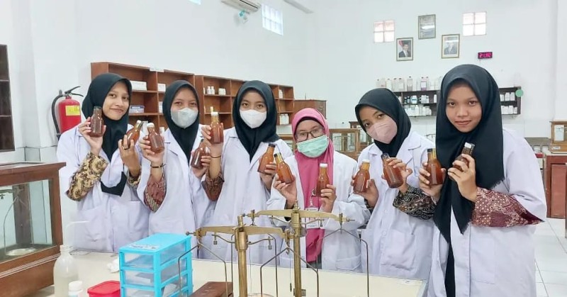 Kegiatan Praktikum PKWU yang dilaksanakan oleh kelas XI bersama Ibu Rahma Wibawa Ningsih, S.Pd menghasilkan produk Jamu Asam Kencur.