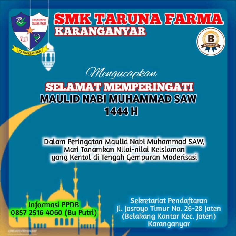 Segenap Civitas SMK Taruna Farma mengucapkan selamat memperingati hari Maulid Nabi Muhammad 1444 H.