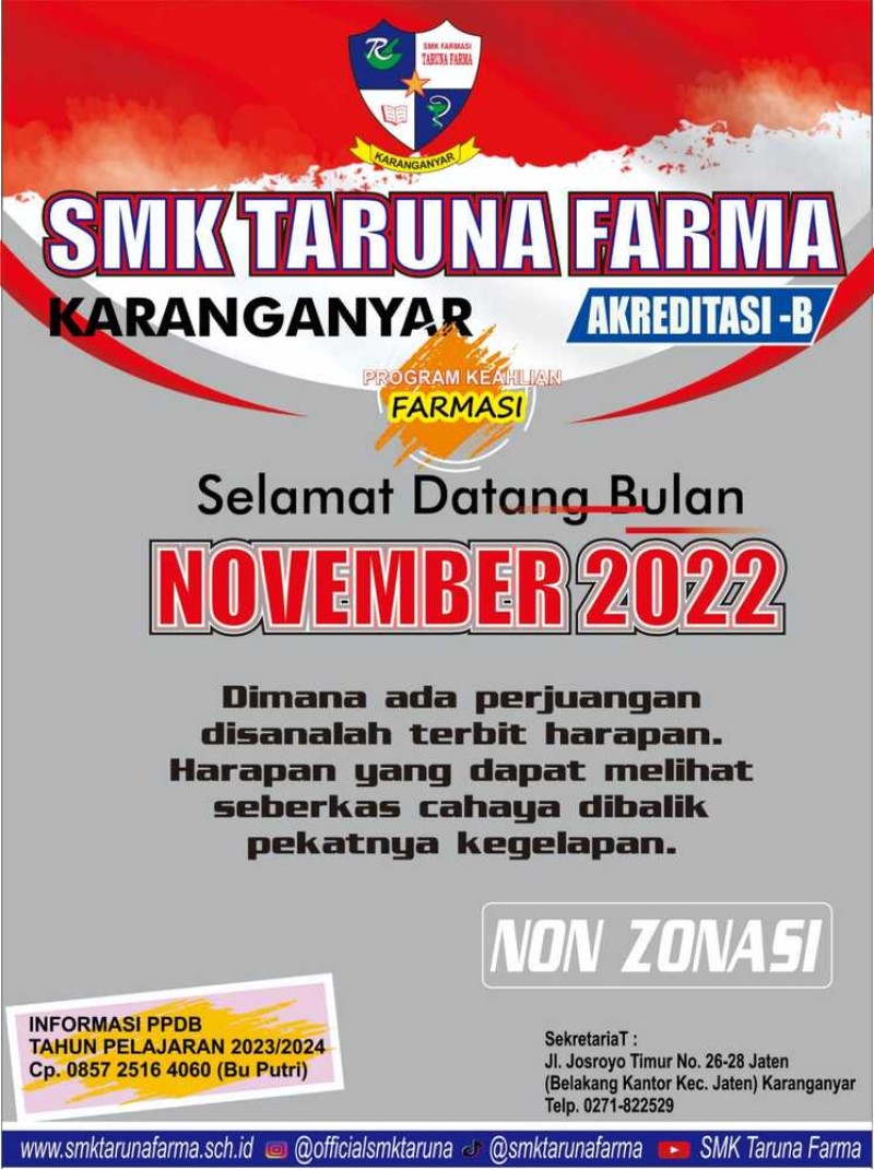 Tidak dirasa, bulan November telah tiba. Semoga di bulan November ini semakin banyak kegiatan yang bisa kita capai, dan semakin maju pendidikan di Negeri kita, terutama SMK Taruna Farma.