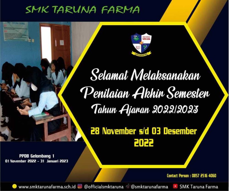 Pada hari Senin, 28 November 2022, telah dimulai UAS Gasal SMK Taruna Farma yang diikuti seluruh siswa kelas X, XI, dan XII.